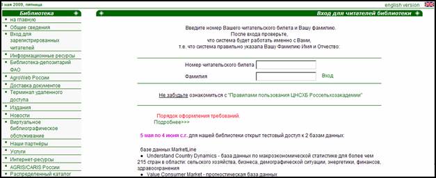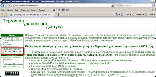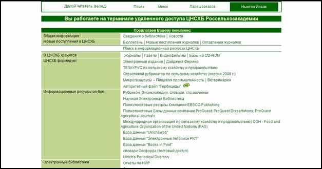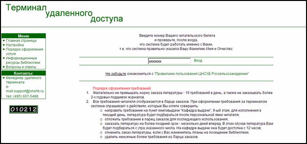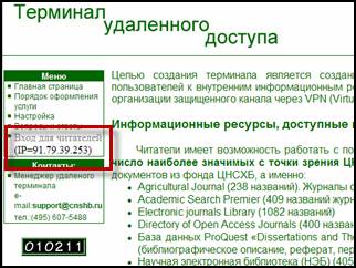 Терминалом удаленного доступа от работы в читальном зале ЦНСХБ это то, что на