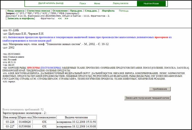 если кнопки «Заказ для получения твердой копии» нет, то значит VPN-соединение разрушилось в процессе работы, и Вам снова